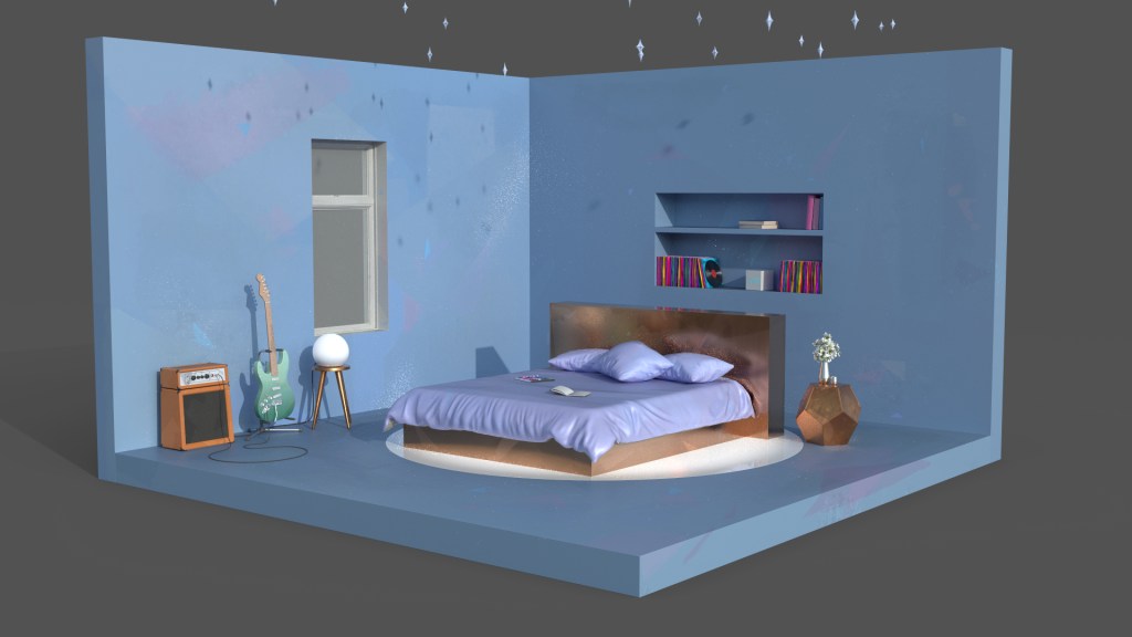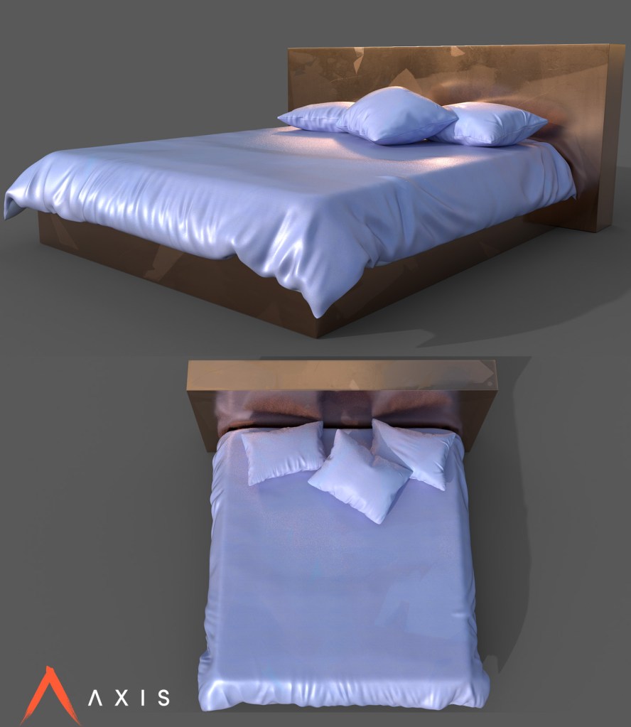 Working at Interference Pattern for client Axis Studios, environment build for the music video for K/DA’s single, More. Full environment build (Maya for modelling and Substance Painter for texture), including my first foray into Marvelous Designer for the soft furnishings on the bed.
